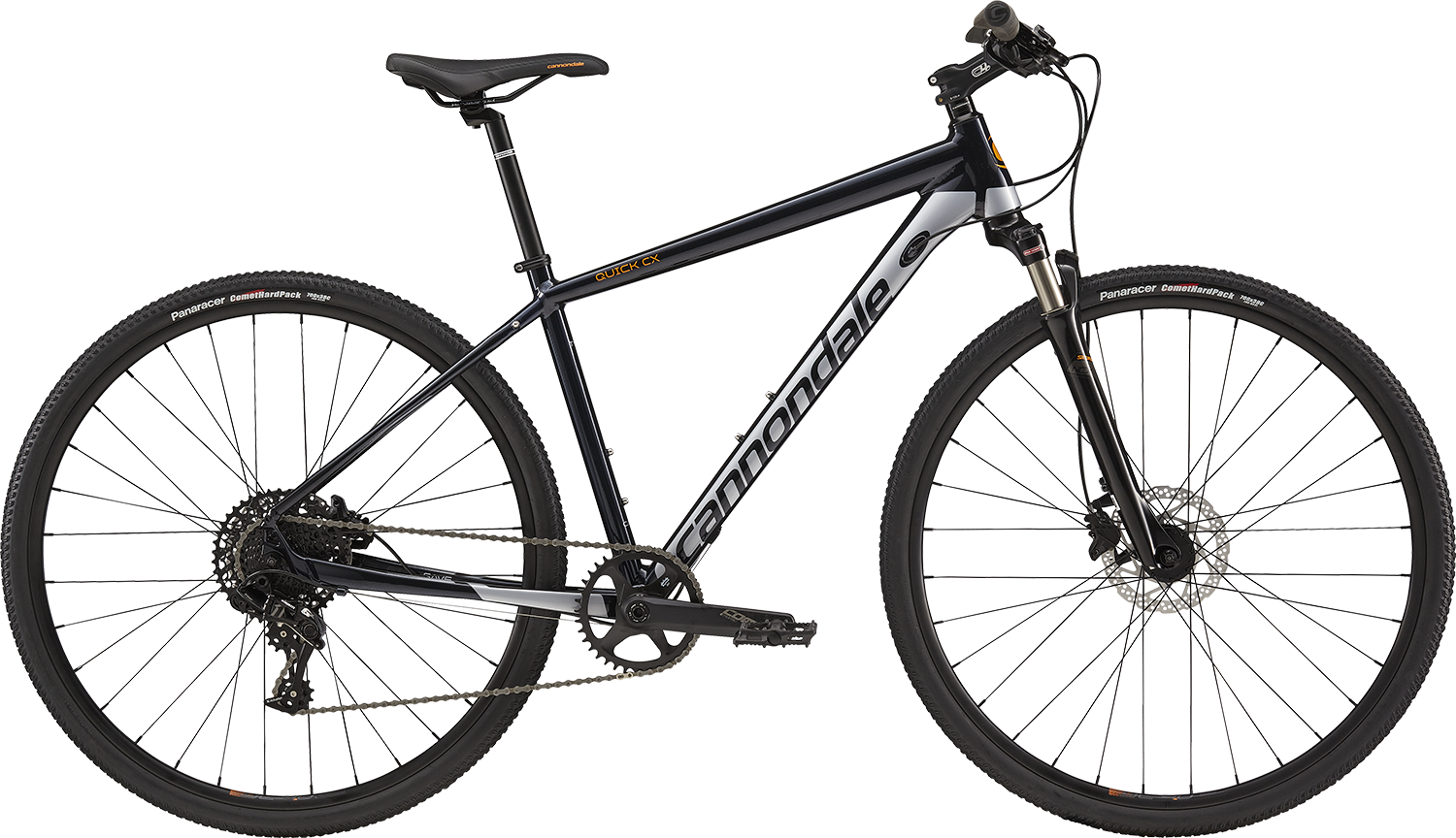 Dirt one day, pavement the next. From confident commuting to fire road exploring, the Quick CX2 is built to thrive wherever your adventure leads. A SmartForm alloy frame sets the stage with responsiveness and low weight, while a Suntour suspension fork takes the edge off rough paths and chunky roads. The CX 2's streamlined SRAM 1x11 drivetrain takes you anywhere you want to go, powering Panaracer Comet Hardpack tires that grip a variety of surfaces so you can explore that social trail with confidence. Shimano provides supreme, all-weather braking power with hydraulic disc brakes, and Cannondale's own cockpit components make for a comfortable ride with tight control that dials up the fun.