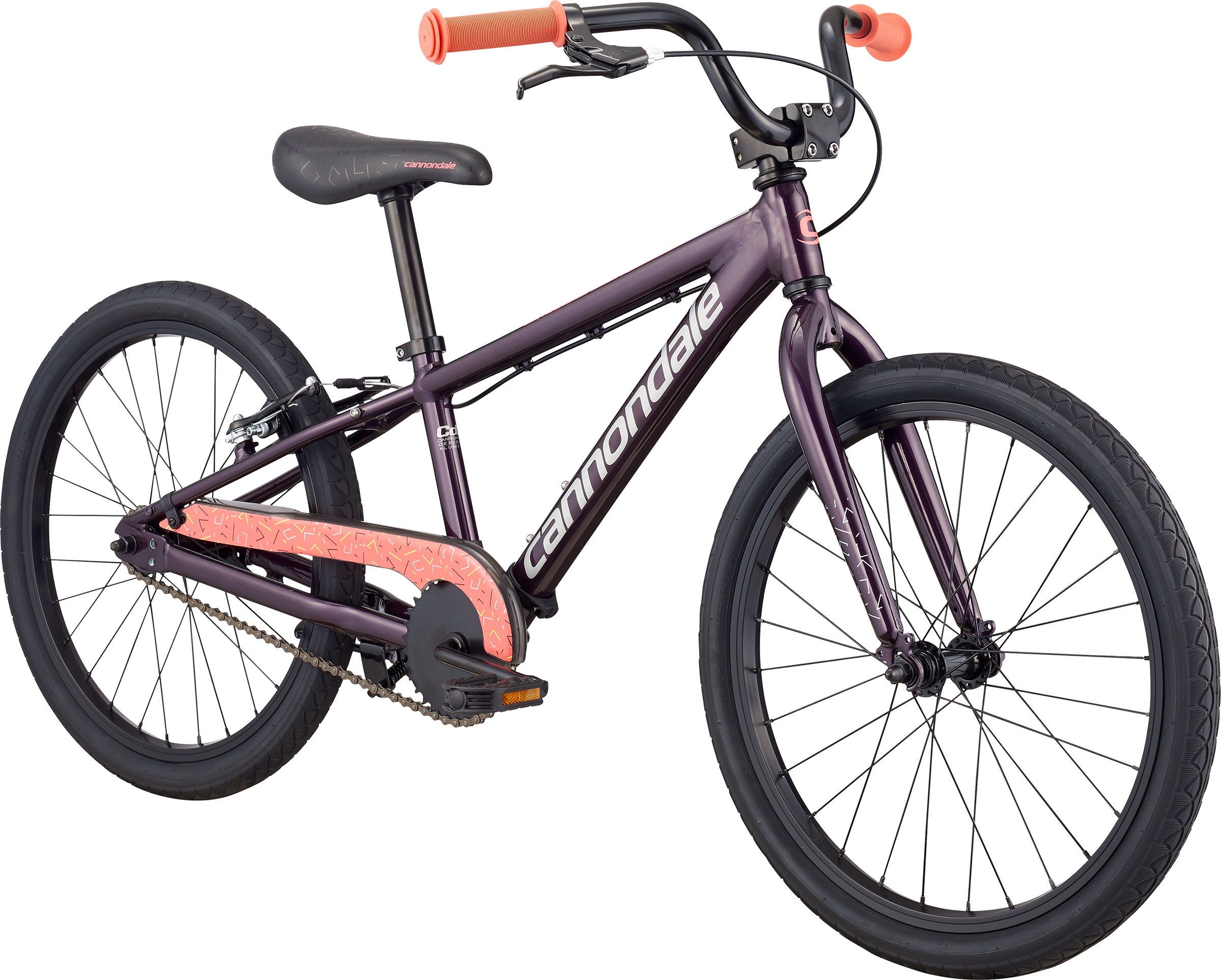 Cannondale's Trail 20 Single-Speed is an ideal bike for that transition period between the training wheels and a fully geared, off-road machine. A lightweight aluminum frame rolls on strong 20-inch wheels with street and trail gripping tires. The one-speed drivetrain keeps it simple and minimizes maintenance, while the rear coaster brake and hand brake help kids transition from foot to hand controls.