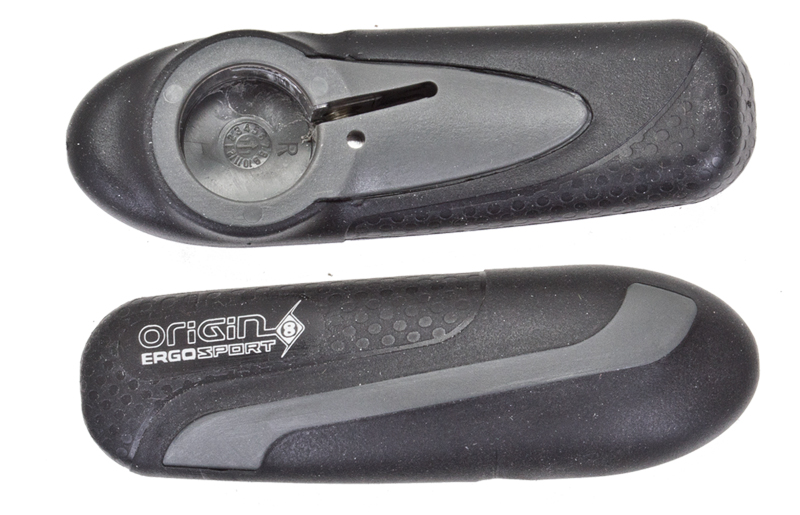Get a grip on cycling comfort with Origin-8's Ergo-Sport Bar Ends. They are made of light and durable forged aluminum with built-in bolt-on clamps for a clean and custom integrated-with-the-bars look. They also have Kraton rubber covers for a great ergonomic grip with top vibration damping and comfort.