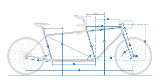 Material: heat-treated, triple-butted Ritchey Logic steel tubing - TIG welded Fender mounts Ultra-light forged and machined straight 1-1/8" headtube WCS headset included (upper IS42/28.6 - 16mm stack height | lower IS42/30) 145mm Quick Release Forged dropout with integrated derailleur hanger 27.2mm seat tubes with integrated seat collars (max torque setting: 6Nm) Seat tube clamp size: 28.6mm (2.5Nm max for derailleur clamps and chain guides) Designed for standard tandem gearing - stoker crank: 52/39/30T External cable routing Bottle mounts: 5 |