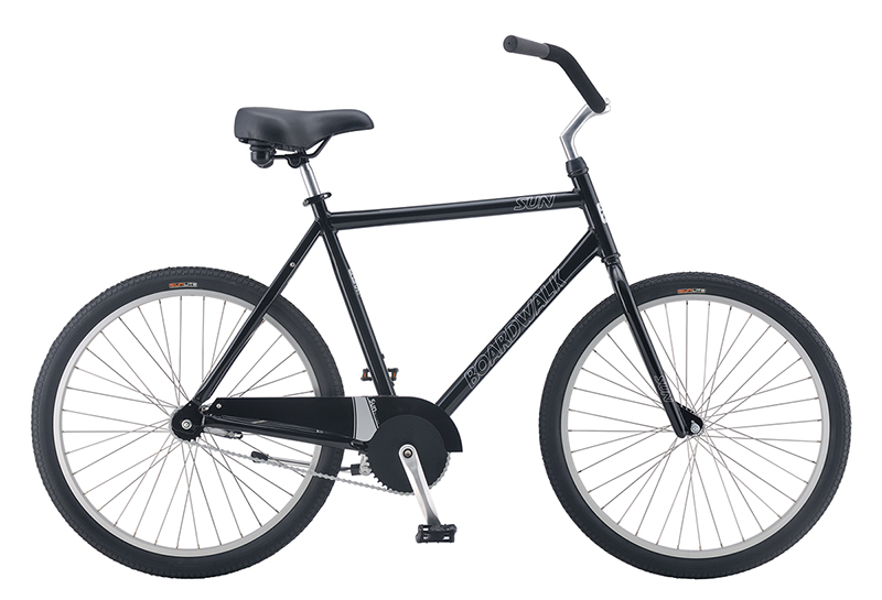 Sun's Boardwalk cruiser boasts a sweet upright riding position, a plush seat and wide handlebars to make every cruise as comfortable and carefree as possible. Plus, it's got an aluminum frame and wheels for a wonderful ride. You'll also love the simple, low-maintenance one-speed, coaster-brake drivetrain.