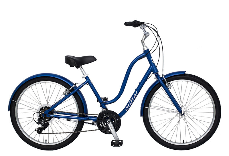 The Drifter is an ideal choice for casual rides around the neighborhood, bike path, or wherever your adventure awaits. The unique Foot Forward pedal placement and easy upright riding position ensure total comfort and stability while on the bike. The Foot Forward position allows you to maintain proper saddle height while still having the ability to place your feet on the ground when seated. The Drifter 21 features 21 speeds for comfortable pedaling on all types of terrain.