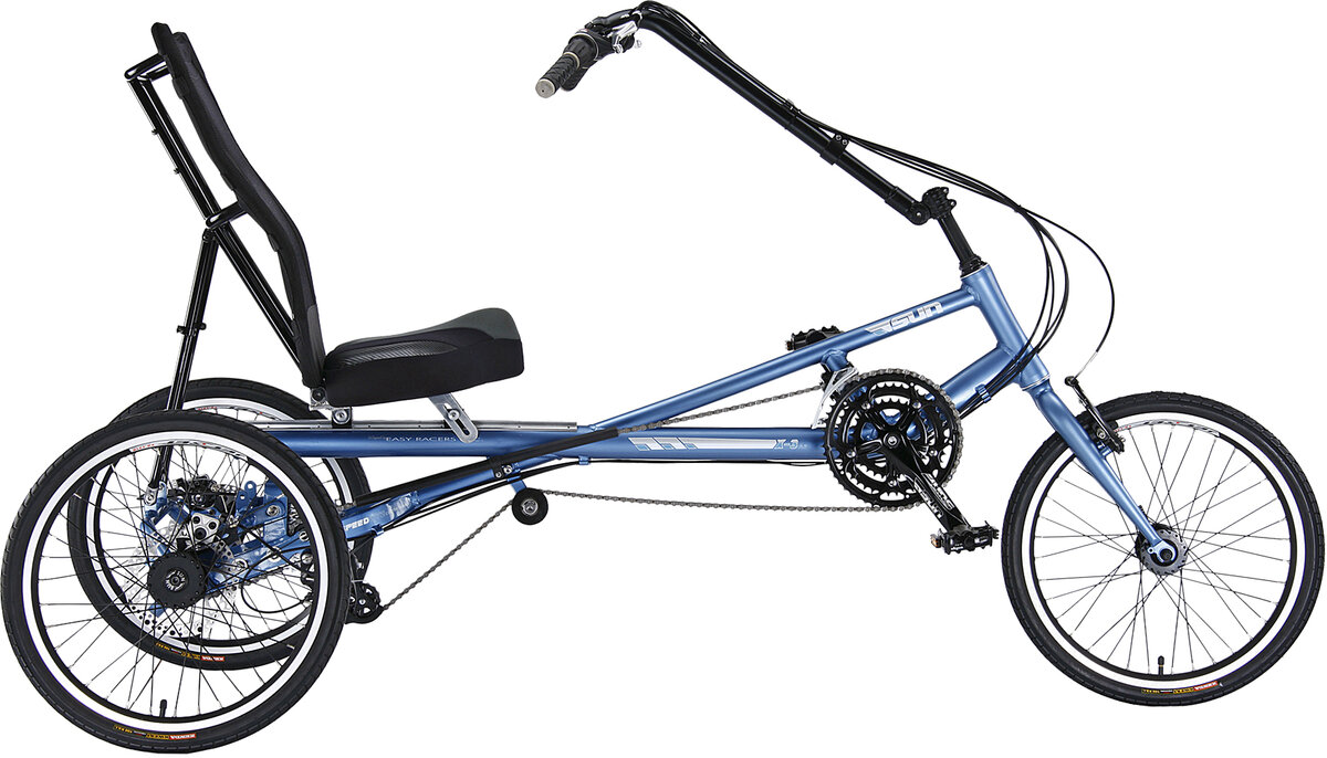 The X3-AX is a performance trike but isn't designed exclusively for performance riders. This trike has the Seat Track System with tilt adjustment—with this system, no seat components touch the frame. Constructed of a 7005 aluminum frame, the result is a lightweight package. An additional convenient feature is the Mono-Bar tilting and telescoping handlebar system. All three wheels are 20-inch that come wrapped 100 psi, low-rolling-resistance tires for an incredibly smooth and effortless ride, plus the rear wheels are cambered for stability and tracking