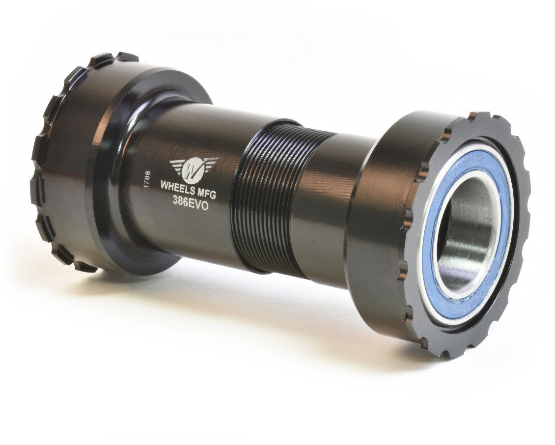 Thread together BB for 386EVO frames and 22/24mm diameter spindle cranks. Machined aluminum cups thread together for stability, increased bearing life, and simple installation and maintenance. No more creaking. Smooth operation. Fast bearing replacement.